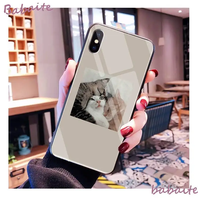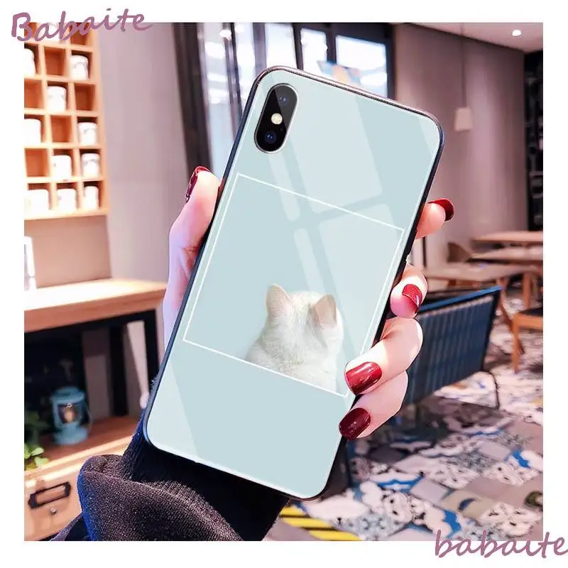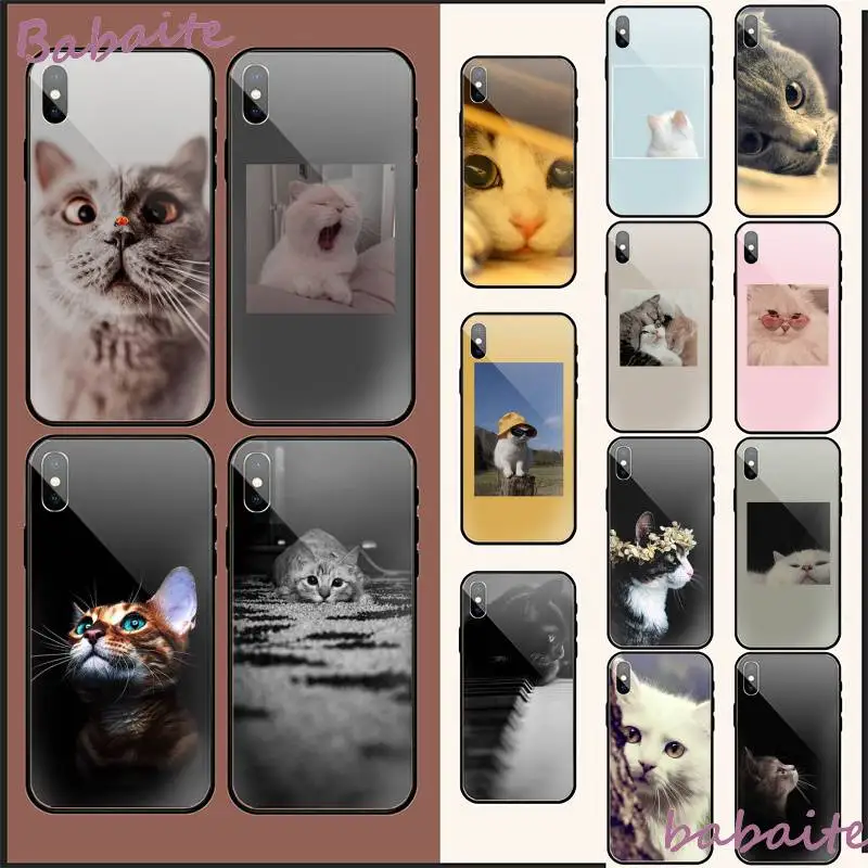 Promo Babaite angel animal cute cat Cover Tempered Glass Shell Phone Case For iPhone XR XS MAX X 7 8 6S P
