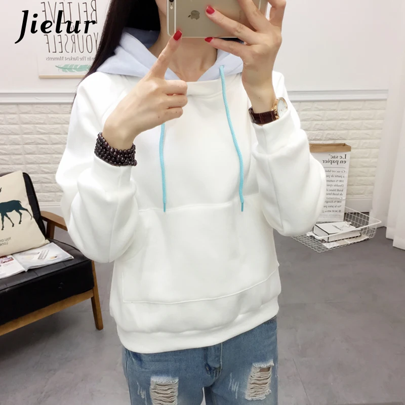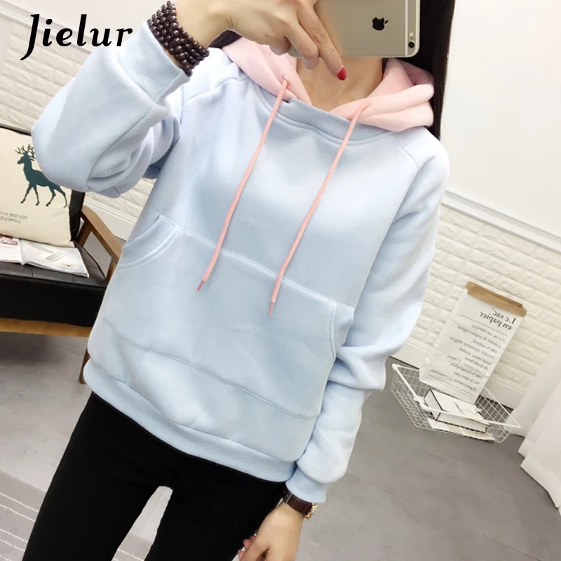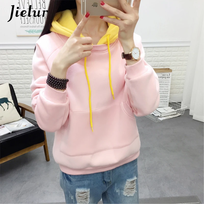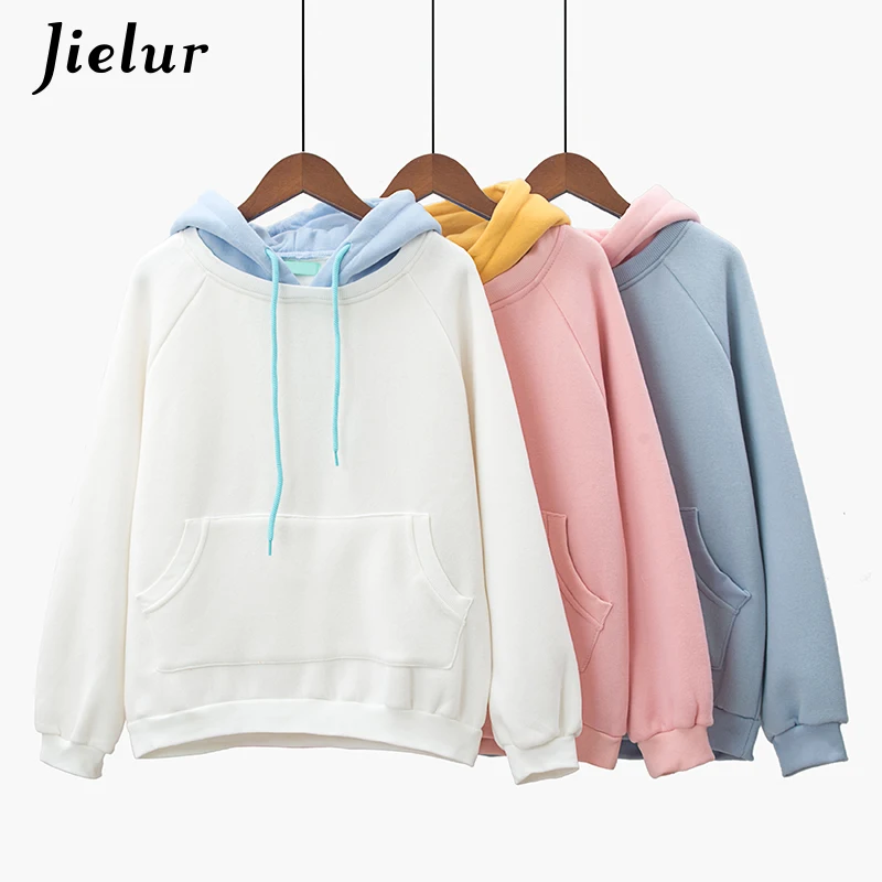 Promo Jielur Kpop Fashion Kawaii Hoodie Harajuku Hit Color Fresh Pink Sweatshirt Women Warm Fleece Hooded