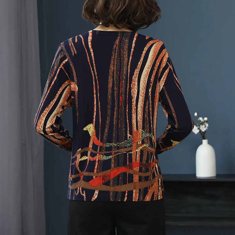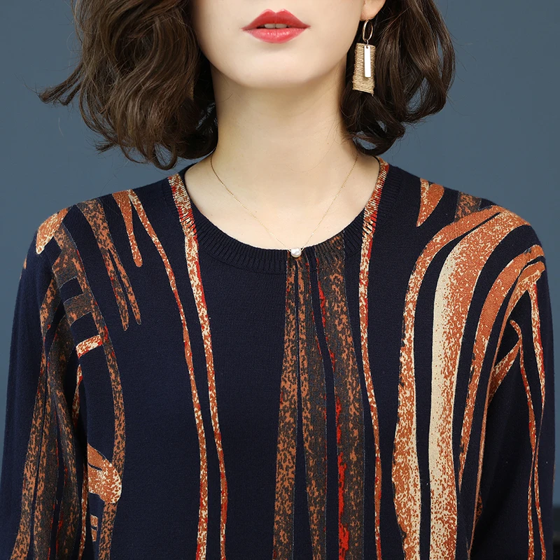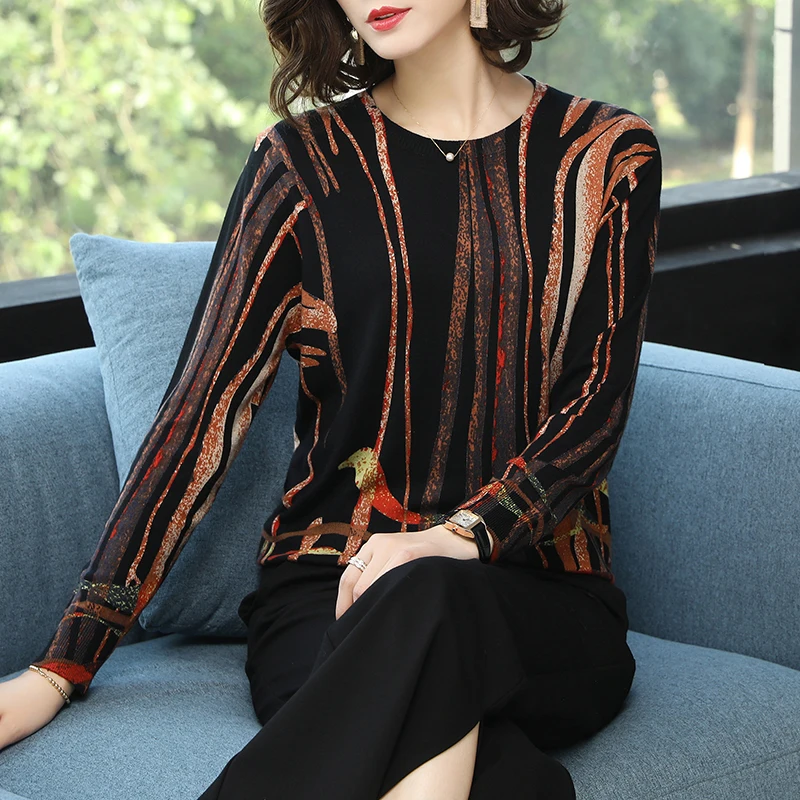 Promo YISU Women Sweater 2019 fashion Spring Autumn Warm Pullovers Sweater stripe Printed Sweaters Female